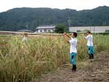 私の班は キビの防雀ネット張り、小豆収穫、を体験していただきました。