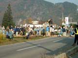 木遣りの掛け声で最後の御柱引き。本祭は来年の4/11