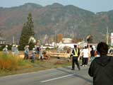 漸く県道を横断出来る位置まで来ました。大きな丸太です