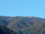 まだ雪が無い美ヶ原頂上。風力発電の塔が判りますか