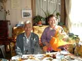 80歳の誕生日に大きな花束を貰い大喜びのお袋さん