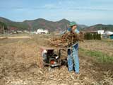 キビの木をカッターで切断、畑に鋤き込む準備を行う。晩秋の風物詩かな。