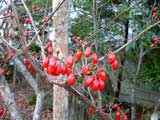 庭のサンシュウの木に赤い花が咲いている?実が綺麗です